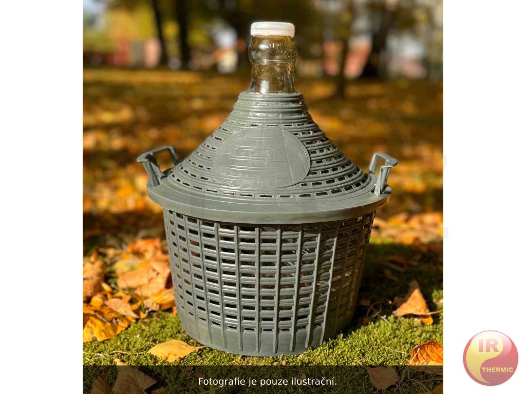 Demižon v plastovém obalu (koši) o objemu 25 litrů.