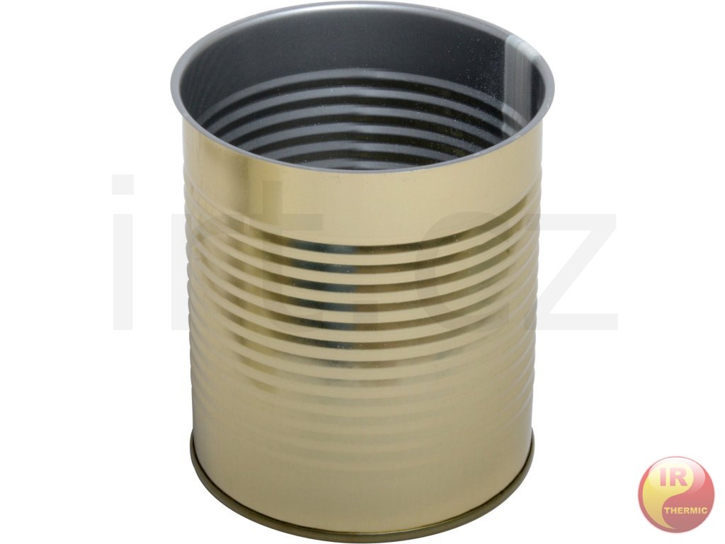 Zavařovací plechovka - konzerva o průměru 99 mm a výšce 119 mm se signovaným (vlnkovitým) profilem se užívá ke konzervaci masa, potravin či jiných produktů.