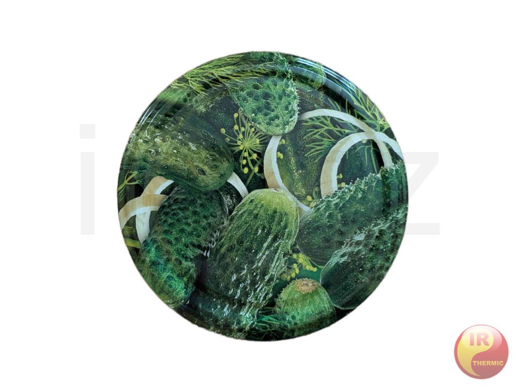Závitové víčko na zavařování Twist TO-82 s potiskem okurky 3 RTS P, je víčko se šroubovacím uzávěrem typu RTS P. Použití víčka se šroubovací sklenicí na zavařování Twist o vnějším průměru hrdla 82 mm.